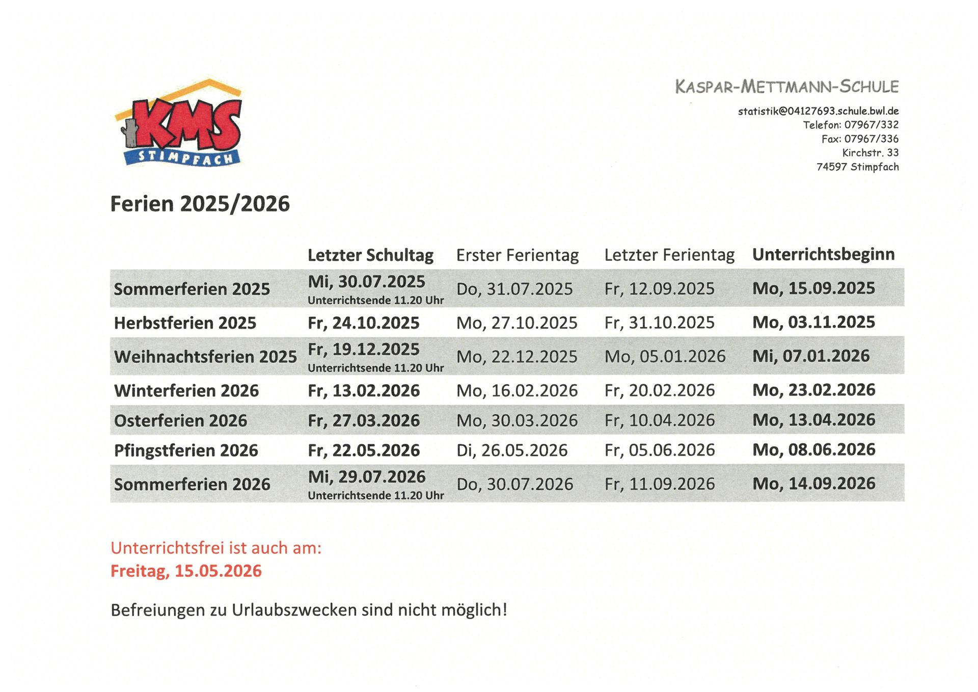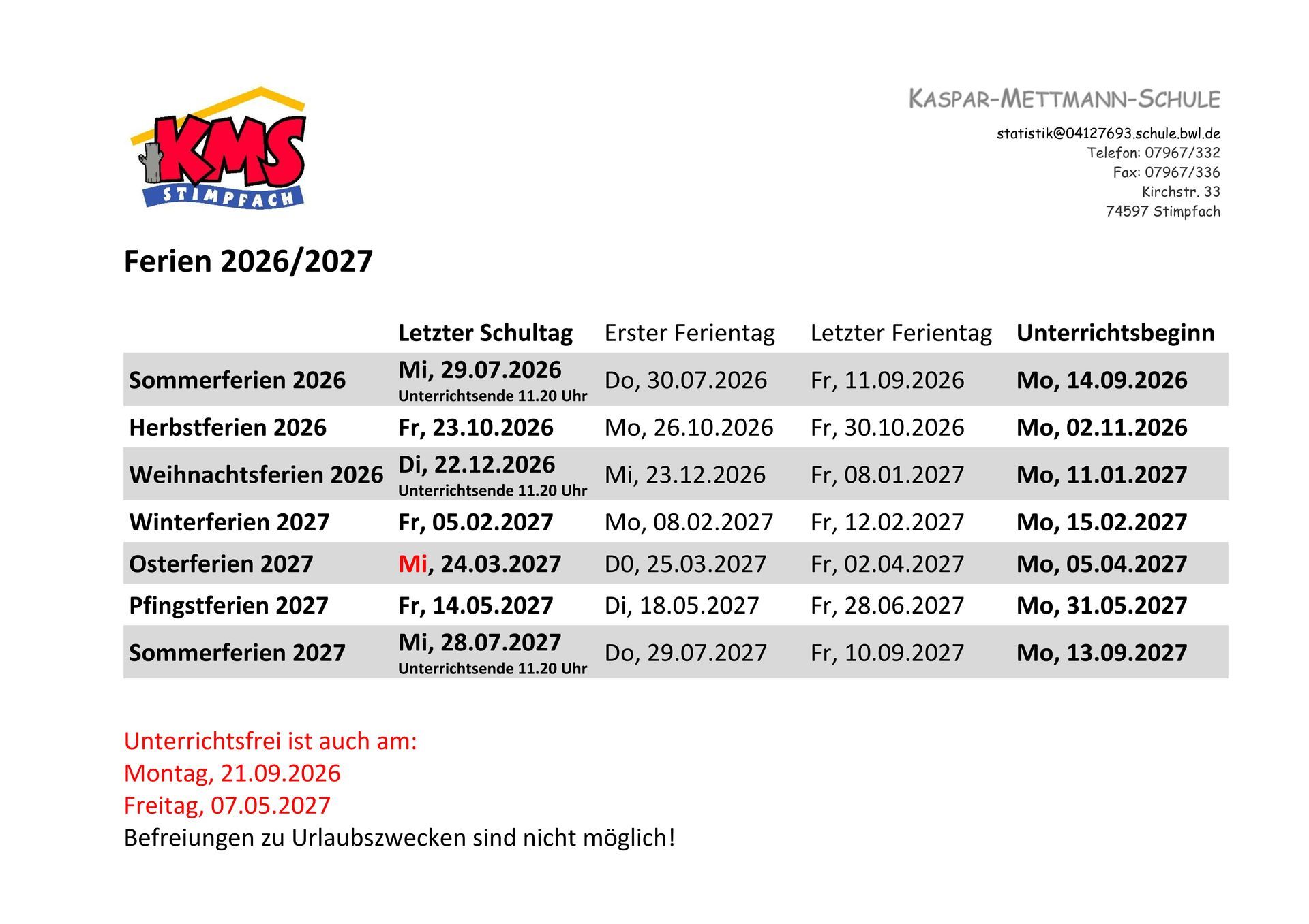- Telefonisch ab 8.00 Uhr oder per e-mail unter statistik@04127693.schule.bwl.de